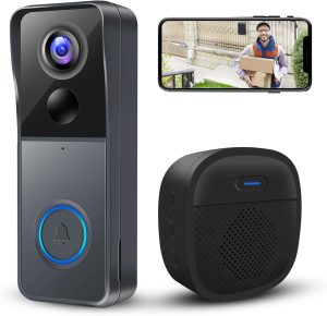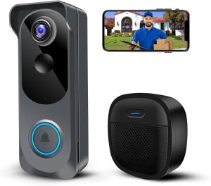 - 【1080P Full HD & IR Night Vision & IP66 Waterpoorf】Video doorbell presents you with a 1080P full HD video with 166° wider view. it will let you enjoy industry-leading video clarity and super night vision up to 33ft, taking the advanced night vision experience to you. The doorbell protects your home from day to night. With an IP66 material casing, The smart doorbell camera is water and dust resistant and offers incredible standby time and long lasting performance.
